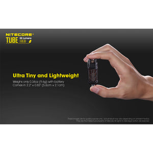Look no further than the NITECORE Tube V2.0 for a lightweight EDC keychain flashlight. Designed to be ultra compact and lightweight, it is so easy to carry that you might forget it. At just 0.34 ounces, the Tube V2.0 weighs about one-tenth of typical car key. A familiar car key fob shape, the Tube V2.0 is just 2.2 inches in length and under an inch wide. Available in multiple colors the Tube V2.0 adds a personal touch to your EDC.
