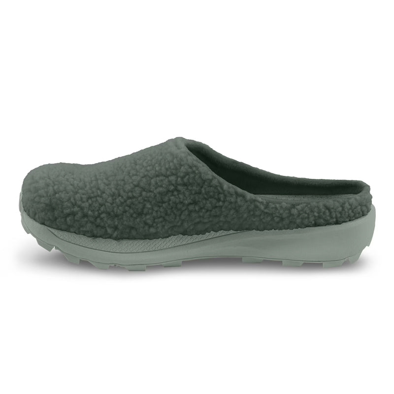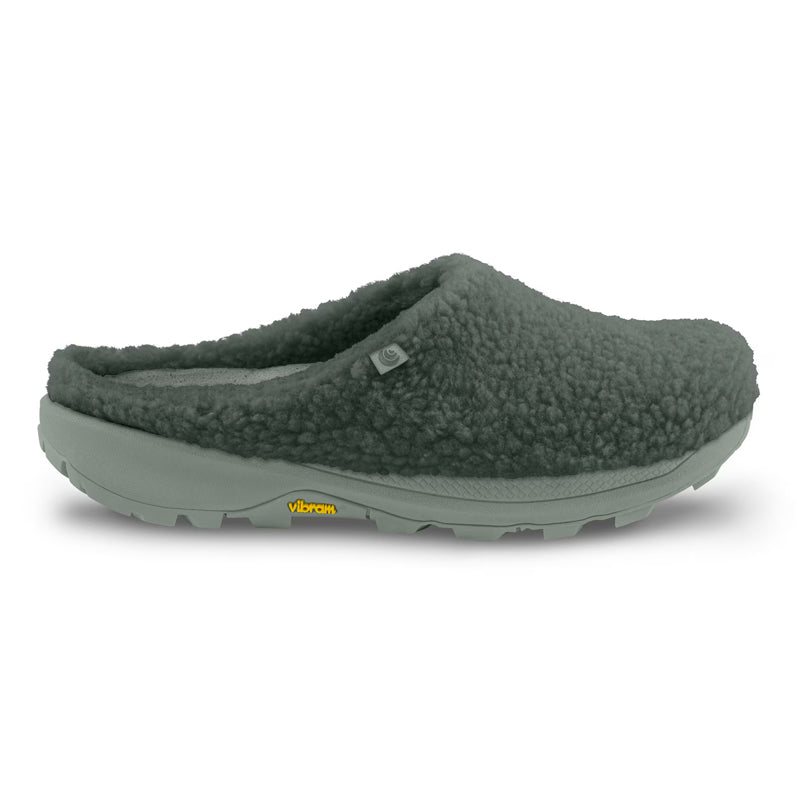 Our slip-on shoe is designed not only to restore your feet after a run or workout but to deliver a super comfortable fit you can slip into for all your daily activities. Perfect to wear without socks, the slipper design features a cozy recycled polyester fleece upper, while our 3D Wave Sense Insole offers gentle massaging comfort along the bottom of the foot. We added a Vibram® XS Trek EVO outsole for optimal multi-surface traction and durability so the Topo Revive recovery slide for women is ready to take on whatever the day brings you.